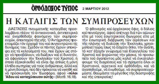δείχνουν πολλοί εκκλησιαστικοί ηγέτες, προσπαθώντας να ανταγωνιστούν τους